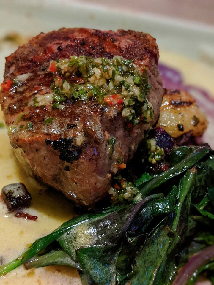 For more carnivorous appetites, there’s the Filet Mignon with diced Okinawan Sweet Potatoes – or go even bigger with a Tomahawk pork chop or ribeye.