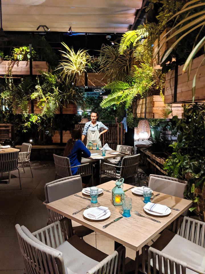 Lush with a living wall in the restaurant proper and greenery in planters on the lanai, it’s a welcome oasis in the heart of Oahu’s tourism hub.