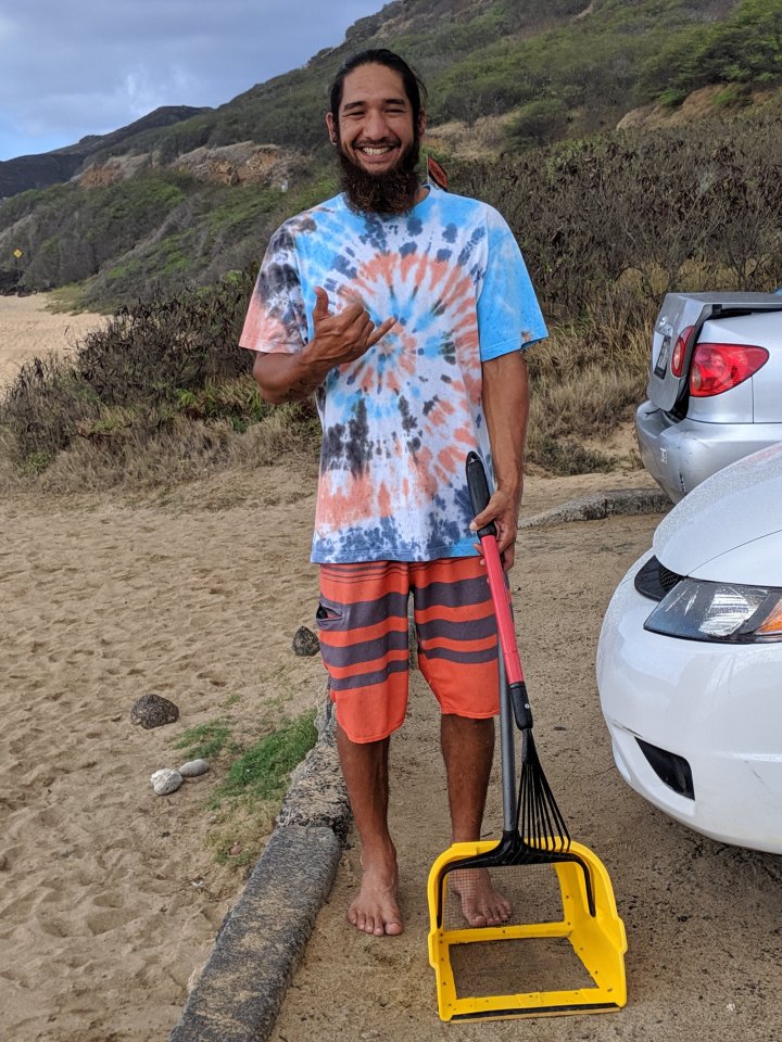 @alohafrequency hopes to inspire others who see him with his customized pan picking up trash on the beach – worked on me, gonna have Kevin make me one!